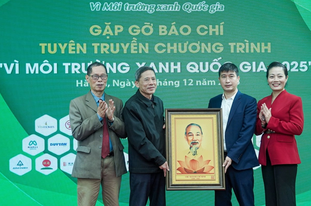 The organizing committee receives commemorative gifts from businesses participating in the program. Photo: Bao Thang.At the conference, Dr. Hoang Hiep, Director of the Institute for Green Growth Research (Vietnam Academy of Agriculture), stated that after more than 13 years of implementation, the program has shifted from a communication role to an action-oriented one. The focus for 2025 is to help businesses understand the green transformation roadmap and have tools to self-assess their readiness.