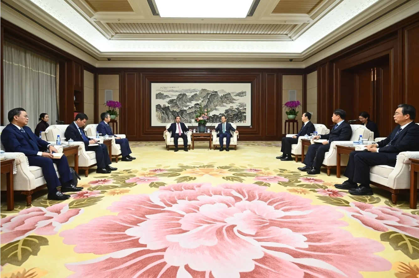 Minister Tran Duc Thang met with Beijing Mayor Yin Yong on the afternoon of November 27. Photo: Tung Dinh.