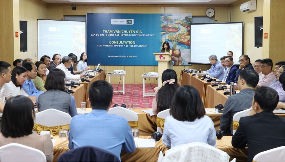 Panorama of the Expert Consultation Conference on "Soil nutrient maps to support soil health management". Photo: Phuong Linh.The IRRI team, together with partners, including colleagues from the Institute of Soils and Fertilizers, developed this map to provide users with information on the nutrient properties of rice soils at specific locations. We believe that the map will be a useful tool to help farmers, extension officers and managers better understand soil health, and thereby have appropriate land use measures and effective crop management.