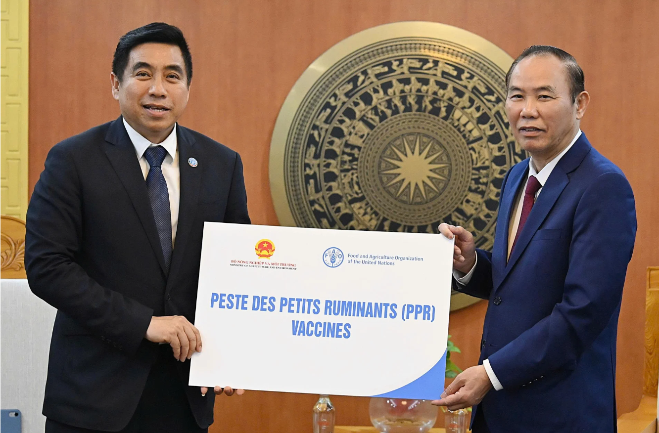 During the meeting, FAO presented vaccines against peste des petits ruminants (PPR) for goats and sheep to Viet Nam. Photo: Bao Thang.The Ministry of Agriculture and Environment has committed to continued active participation in FAO-led global initiatives, including the Global Partnership Program on Transboundary Animal Diseases (GPP-TAD) and the Global Action Plan for Sustainable Livestock Transformation, while strengthening cooperation under the One Health Partnership Framework.