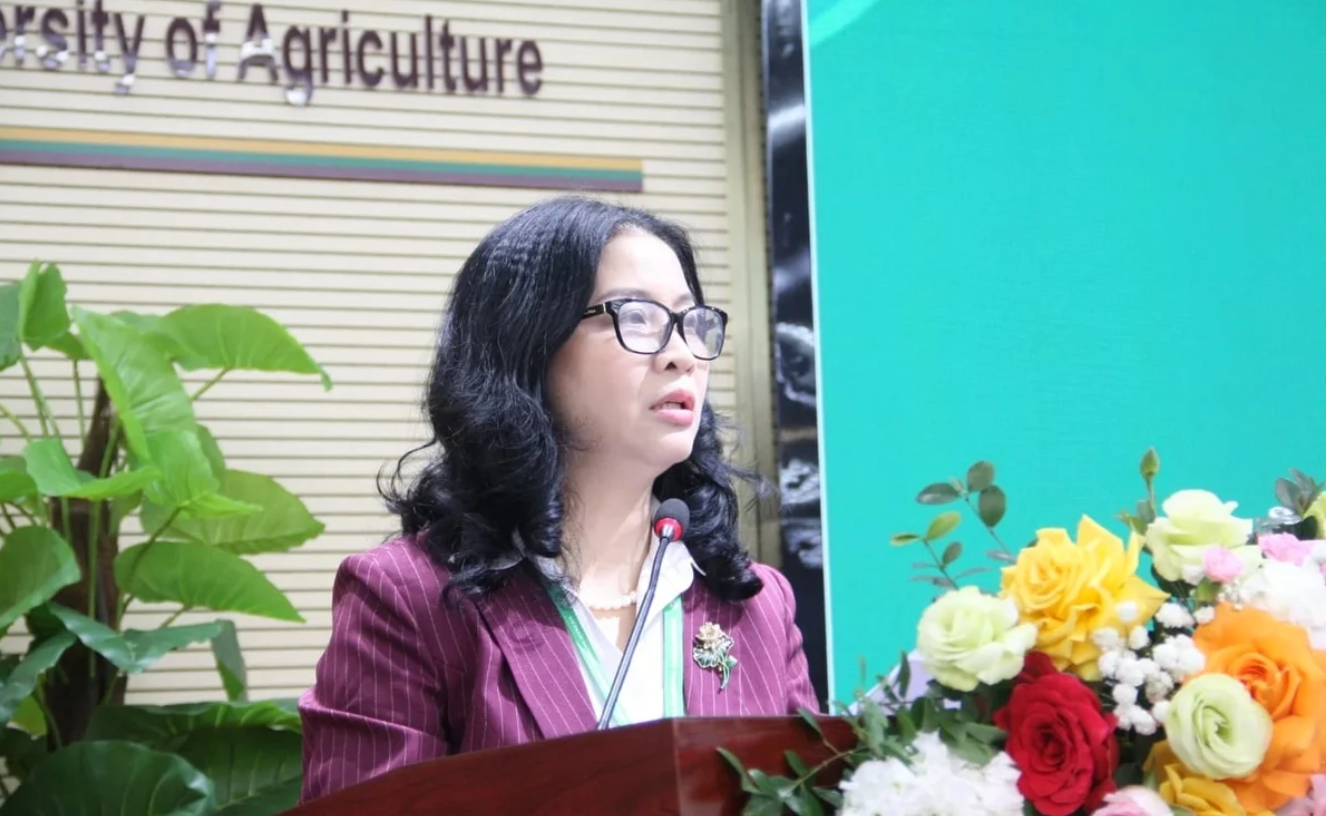 Prof. Dr. Nguyen Thi Lan, Director of the Viet Nam National University of Agriculture, speaks at the event. Photo: Mai Dan.He added that Gia Lam’s key advantage is being home to the Viet Nam National University of Agriculture. This provides a strong foundation for research and technology transfer, supporting modern agricultural value chains that connect with urban development.